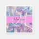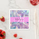 Girly pink, purple and aqua holographic iridescent monogram name and initial napkins. Your custom name and monogram are written in an elegant hand lettered script with a pink background. A perfect birthday or Christmas gift!