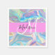 Girly peach, purple and aqua holographic iridescent monogram name and initial napkins. Your custom name and monogram are written in an elegant hand lettered script with a pink background. A perfect birthday or Christmas gift!