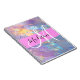 Girly pink, peach and aqua holographic iridescent monogram name and initial notebook. Your custom name and monogram are written in an elegant hand lettered script with a pink background. A perfect birthday or Christmas gift!