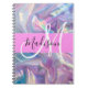 Girly pink, purple and aqua holographic iridescent monogram name and initial notebook. Your custom name and monogram are written in an elegant hand lettered script with a pink background. A perfect birthday or Christmas gift!