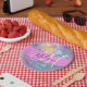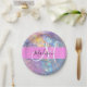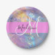 Girly Pink Holographic Iridescent Monogram Name Paper Plate