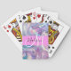 Girly pink, purple and aqua holographic iridescent monogram name and initial playing cards. Your custom name and monogram are written in an elegant hand lettered script with a pink background. A perfect birthday or Christmas gift!