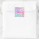 Girly Pink Holographic Iridescent Monogram Name Square Sticker