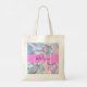 Girly pink, aqua and turquoise holographic iridescent monogram name and initial tote bag. Your custom name and monogram are written in an elegant hand lettered script with a pink background. A perfect birthday or Christmas gift!
