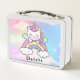 Girly Pink Kawaii Unicorn Cat Holographic Rainbow Metal Lunch Box