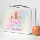 Crafted from durable metal, it ensures your child's meals stay fresh and secure. Personalise it with their name for a unique touch that stands out. Ideal for kids who love unicorns, rainbows, and all things pink and magical, this lunch box brings a touch of fantasy to their everyday routine. Order the Girly Pink Kawaii Unicorn Cat Holographic Rainbow Metal Lunch Box today and make their school days more enchanting!