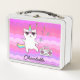 Girly Pink Kawaii Unicorn Cat Personalised Metal Lunch Box
