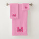 Girly Pink Modern Script Name Monogram Bath Towel Set