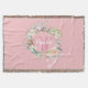 A chic pretty pink initial monogram throw blanket, featuring a beautiful white script name with a pink script surname initial that is framed by a watercolour floral rose garland on a peach pink background. Personalise to create a special keepsake gift to treasure! Designed by Thisisnotme©