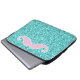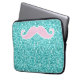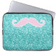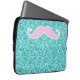 GIRLY PINK MUSTACHE ON TEAL GLITTER EFFECT LAPTOP SLEEVE
