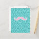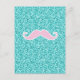 GIRLY PINK MUSTACHE ON TEAL GLITTER EFFECT POSTCARD