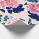 Girly Pink Navy Blue Country Painted Flowers Wrapping Paper