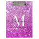 Girly Pink Ombre Glitter Monogram Name Clipboard