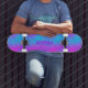 Stand out from the crowd with your own personalised name skateboard! Pink, purple and blue colours.