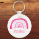 Bright, modern, girly pink rainbow keychain with personalized name text. Add your own name or text using the personalize option.