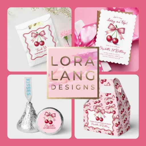 Girly Pink Coquette Cherry 1st Birthday CollectionDesigned by Lora Langowski
