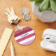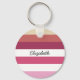A girly pink wide horizontal striped keychain in a pink, dark red, and white striped pattern. Personalise this modern and preppy design by adding your name.