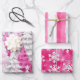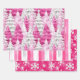Girly Pink Silver Glam Christmas Trees Stripes Wrapping Paper Sheet