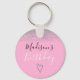 Girly Pink Silver Glitter Sparkles Heart Birthday Key Ring