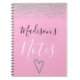 Girly Pink & Silver Glitter Sparkles Heart Notes Notebook