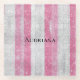 Girly Pink Silver Stripes Sparkle Christmas Glass Coaster