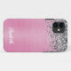 Girly pink brushed metal with silver glitter decorates this iphone case. Designed for you by Blackbery Boulevard.