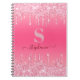 This elegant notebook features pink glitter drips on a soft pink background. Personalise with your initial and name in a trendy script. Easy to customise by clicking "Personalise".
