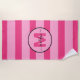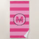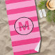 Girly Pink Stripe Script Name Monogram Beach Towel