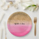 Girly Pink Watercolor Gold Glitter Paper Plate