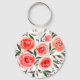 Beautiful pink roses floral watercolor illustration on button keychain.