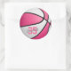 girly pink white basketball classic round sticker