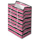 Girly Pink White Black Stripes Medium Gift Bag