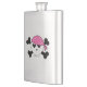 The product is a good size and came exactly as it was pictured. The lid is not attached to the flask, which could be dangerous on drunken nights... The print came out surprisingly well and looks very sharp. Would definitely recommend.