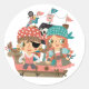 A pirate ship with pink skull and crossbones flags, a parrot, and two pirate girls, a design great for girl pirates! Pirate T-shirts, bodysuits, bibs, blankets, cards, stickers, bags, mugs, clocks, pillows, and other pirate gear!