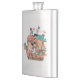The product is a good size and came exactly as it was pictured. The lid is not attached to the flask, which could be dangerous on drunken nights... The print came out surprisingly well and looks very sharp. Would definitely recommend.
