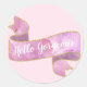 Girly Pretty Blush Pink Hello Gorgeous Gold Ribbon Classic Round Sticker