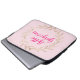 Girly and pretty blush pink gold wreath laptop sleeve featuring the words "Hello Gorgeous" in an elegant hot pink script.