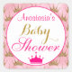 Girly and pretty pink and gold glitter princess crowns sparkly Baby Shower square sticker. This sticker also features a hot pink princess crown/ tiara, and elegant hot pink writing. You can easily add the name of your choice and change the colour and font using the customise option!