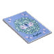 Girly and gorgeous personalised monogram name mandala dragonfly notebook. Features a soft blue mandala with four small blue and purple watercolor dragonflies on the outsides and a large dragonfly on the top centre of the mandala. Bluish purple background. Personalised with your name in a script font.