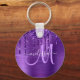Girly Purple Dripping Glitter Brush Metal Monogram Key Ring