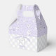 This is an adorable, girly purple & green Halloween 1st Birthday Favour Box. The background features a cute hand-drawn pattern of ghosts, bats, stars and moons on a pastel purple background. The front and back feature a cute ghost on a purple & green gingham pattern personalised with name and date.