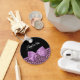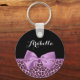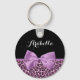 A chic and stylish pinkish purple jaguar print keychain with a girly light purple ribbon tied into a pretty bow. Personalise this trendy animal print design by adding the name of any teen girl. Flat printed image, not actual bow.