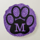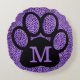 Girly Purple Paw Print with Monogram in Cheetah Round Cushion