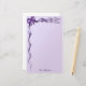 Stationery with purple ribbons and bows draped across the top and left border over violet gradient background. Customise it with your text or remove the text.