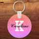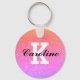 Girly rainbow colour glitter custom name monogram key chain with glittery glimmers and shiny sparkles. Personalised name initial letter with script lettering. Cute girlie Birthday girl gift idea or unique wedding party favour for bridesmaids, guests etc. Glamourous monogrammed keychain design with faux sparkling background texture.