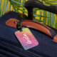 Add a splash of colour to your luggage tag. Personalise with your name, monogram, initial or text. You can change text colour and font style using the customise it further option. The glitter design details are simulated in the artwork. No actual glitter will be used in the making of this product.