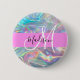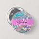 Girly rainbow holographic iridescent monogram name and initial button. Your custom name and monogram are written in an elegant hand lettered script with a pink background. A perfect birthday or Christmas gift!