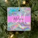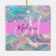 Girly Rainbow Holographic Iridescent Monogram Name Ceramic Ornament