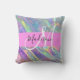 Girly rainbow holographic iridescent monogram name and initial throw pillow. Your custom name and monogram are written in an elegant hand lettered script with a pink background. A perfect birthday or Christmas gift!