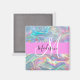 Girly rainbow holographic iridescent monogram name and initial magnet. Your custom name and monogram are written in an elegant hand lettered script with a pink background. A perfect birthday or Christmas gift!
